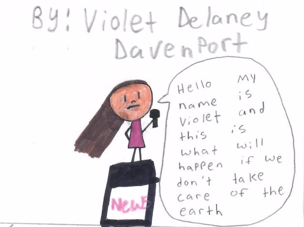 We are happy to announce the winner of our 2025 contest for the best student environmental cartoon. The $100 prize goes to the very talented Violet Davenport, age 10, of Stratford Middle Years School. Violet is an artist who speaks for her generation: her drawing is both serious and uplifting, and we hope you will share it with as many people as possible. GREAT JOB, Violet!